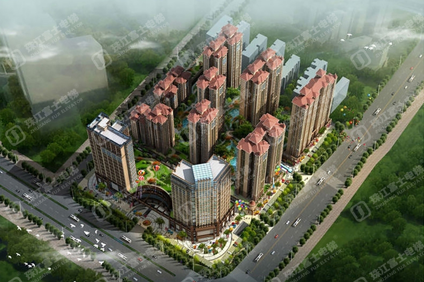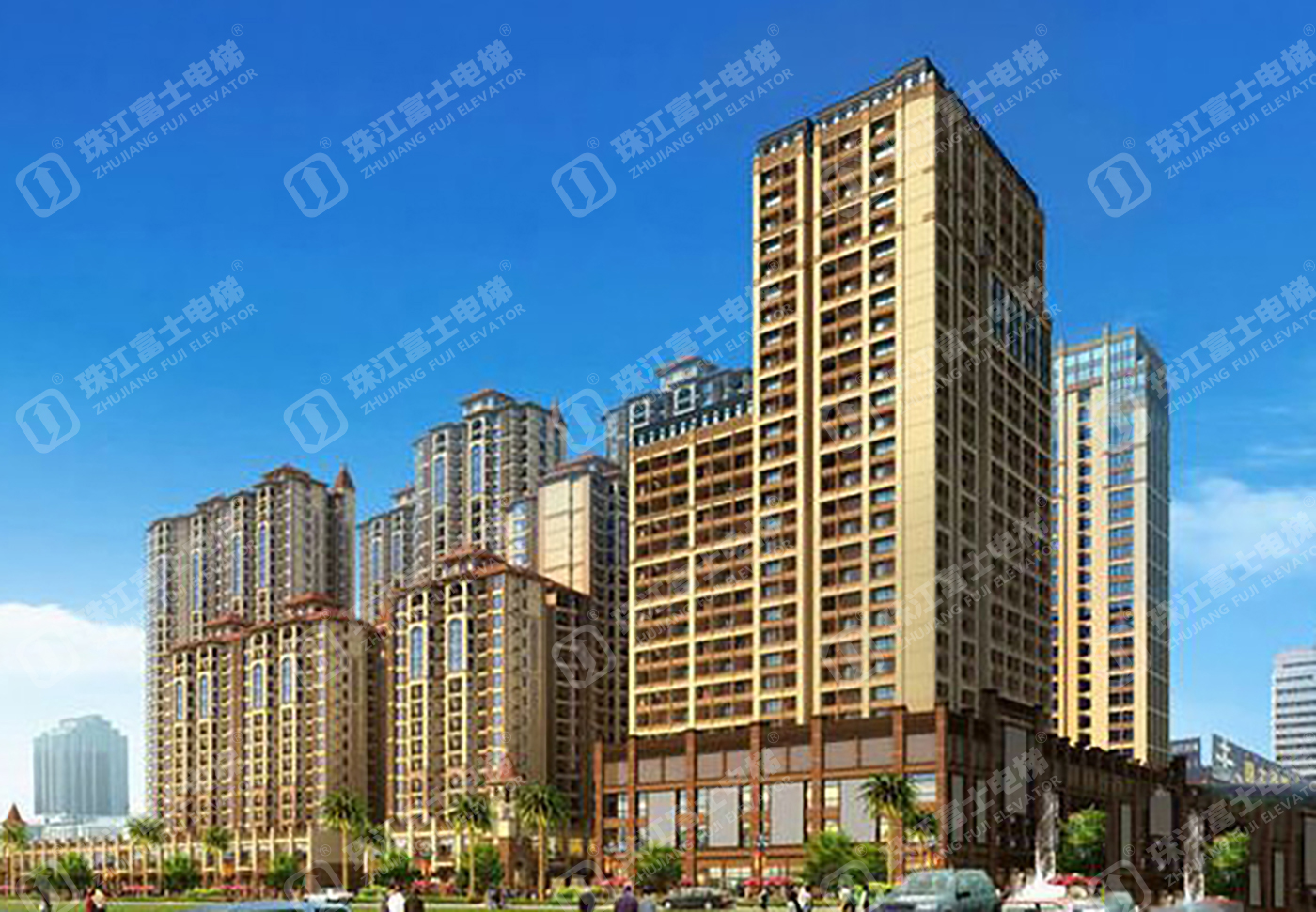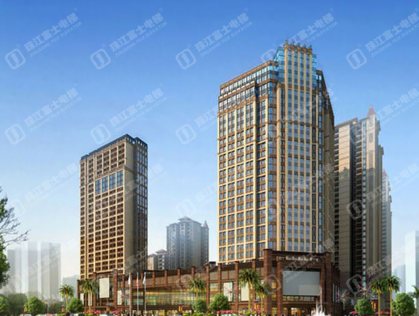 珠江富士電梯為該項目提供了18臺電梯產品:4臺GSTK1050kg、2.5m/s的高速乘客電梯,14臺GSTF1000KG的扶手電梯。